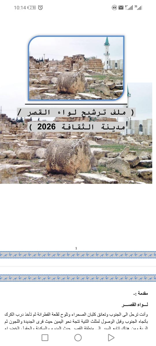 لواء القصر – في تظاهرة وطنية تعكس حجم الطموح الشبابي، نجحت "رابطة شباب لواء القصر" في حسم لقب "مدينة الثقافة الأردنية لعام 2026" لصالح لواء القصر عن إقليم الجنوب. ويأتي هذا الفوز بعد تقديم ملف ترشيح نوعي أعدته الرابطة، مستندةً فيه إلى مخزون ثقافي وتاريخي عريق يمتد لآلاف السنين.