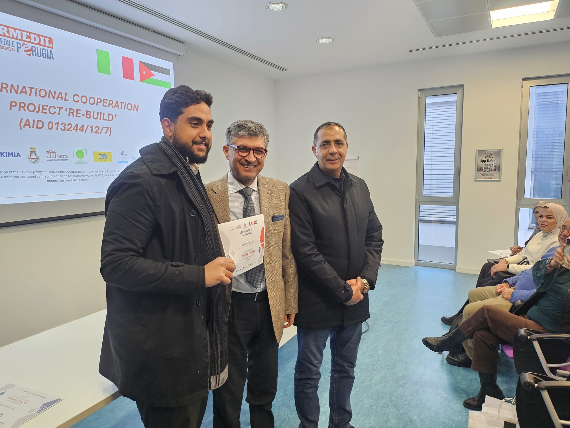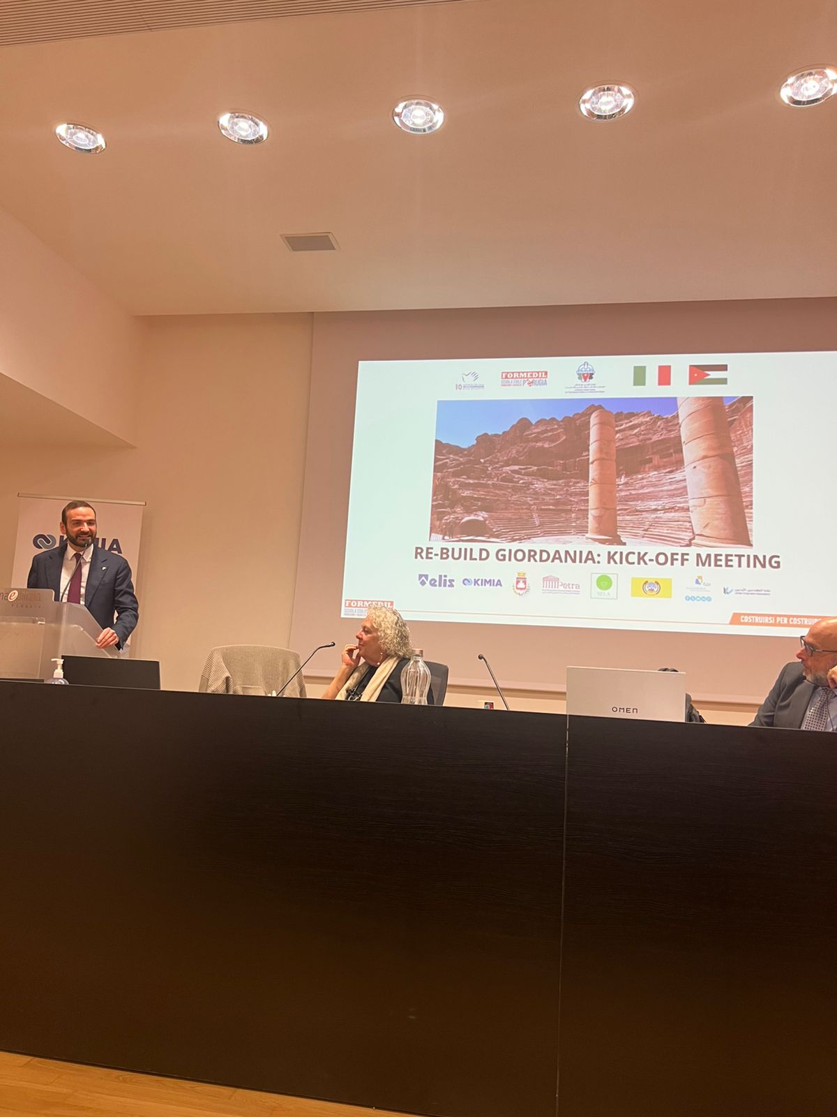 وقد شارك في المؤتمر نخبة من الشركاء الاستراتيجيين من الجانب الأردني ممثلين بنقابة المهندسين والجامعة الألمانية الأردنية وسلطة إقليم البتراء التنموي السياحي وبلدية الكرك فيما مثل الجانب الإيطالي الوكالة الإيطالية للتعاون الإنمائي التابعة لوزارة الخارجية الإيطالية والممول الرئيس للمنحة ومركز البناء الإيطالي وشركة كيميا ومؤسسة إيليس للتوجيه والتدريب المهني حيث رحبت الدكتورة كريستيانا بارتولوتشي مديرة مركز البناء بالوفد الأردني وأكدت على نجاح التجربة القائمة مع المركز الأردني للتأهيل والتدريب مشيرة إلى أنها التجربة الثانية التي أثمرت سابقاً عن ابتعاث 32 مهندساً أردنياً وتأهيلهم كمدربين في السلامة العامة بينما تقام حالياً دورة مكثفة لـ 10 مهندسين من منطقتي البتراء والكرك ليصبحوا مدربين متخصصين في مجال ترميم الآثار
