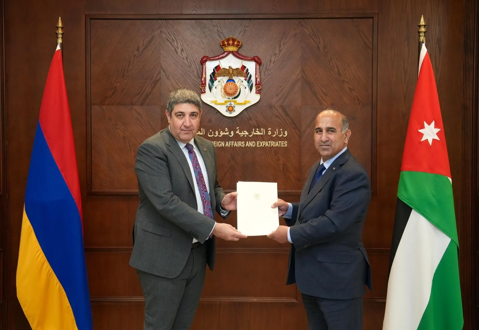 تسلّم أمين عام وزارة الخارجية وشؤون المغتربين السفير ضيف الله الفايز، اليوم الأحد، نسخًا من أوراق اعتماد كلٍّ من سفير جمهورية تشاد عمر تيغن اديبي بيردي، وسفير نيوزلندا غريج لويس، وسفير جمهورية أرمينيا أرسين أراكيليان، سفراءَ معتمدين وغيرَ مقيمين لدى المملكة.