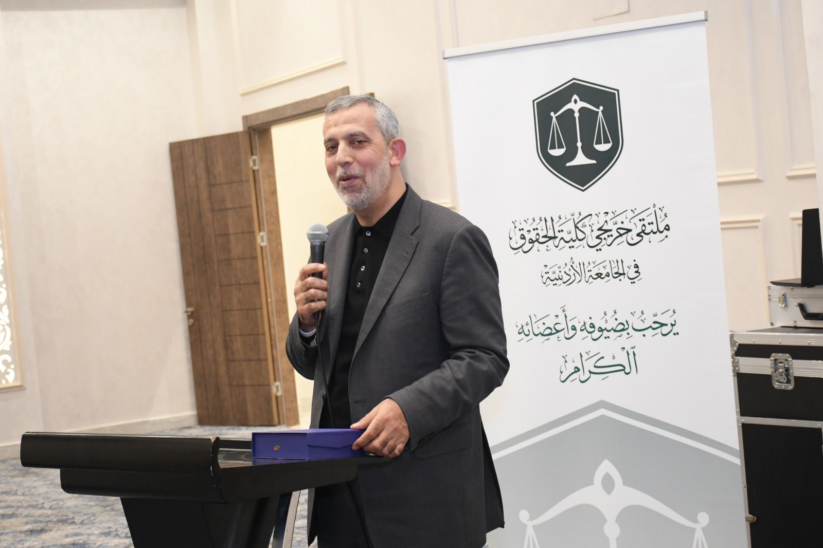 وجاء التكريم بحضور معالي وزير العدل الدكتور بسام التلهوني، وسعادة نقيب المحامين الأستاذ يحيى أبو عبود، وعميد كلية الحقوق الدكتور باسم ملحم، وسط حشد من الشخصيات القانونية والأكاديمية البارزة.