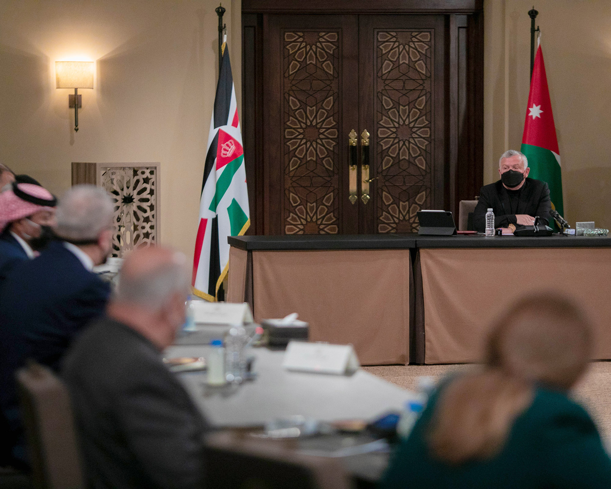 وحضر اللقاء رئيس الديوان الملكي الهاشمي، وعدد من مستشاري جلالة الملك، ورئيس هيئة الأركان المشتركة.