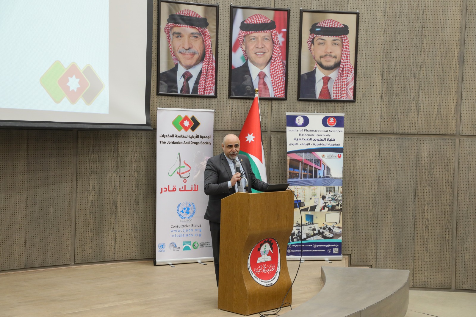 وتحدث في الندوة التي نظمتها كلية العلوم الصيدلانية بالتعاون مع كلية الطب وعمادة شؤون الطلبة، رئيس الجمعية الأردنية لمكافحة المخدرات الدكتور موسى القريوتي، والسيدة روان شهاب من مركز الحسين للسرطان/مكتب مكافحة التدخين، بحضور نائب رئيس الجامعة الأستاذ الدكتور محمد التميمي، وعميدة كلية الصيدلة الأستاذة الدكتورة سجى حامد، وعميد شؤون الطلبة الدكتور أيمن عليمات، وعمداء الكليات الصحية، وعدد من أعضاء الهيئتين الأكاديمية والإدارية والطلبة.