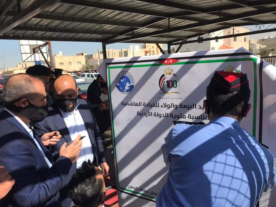 هذا ، كما تخلل الحفل عدة فقرات ومعرض للرسومات التي تجسد مئوية الدولة وزراعة الاشجار والتوقيع على وثيقة تجديد البيعة للقيادة الهاشمية .
