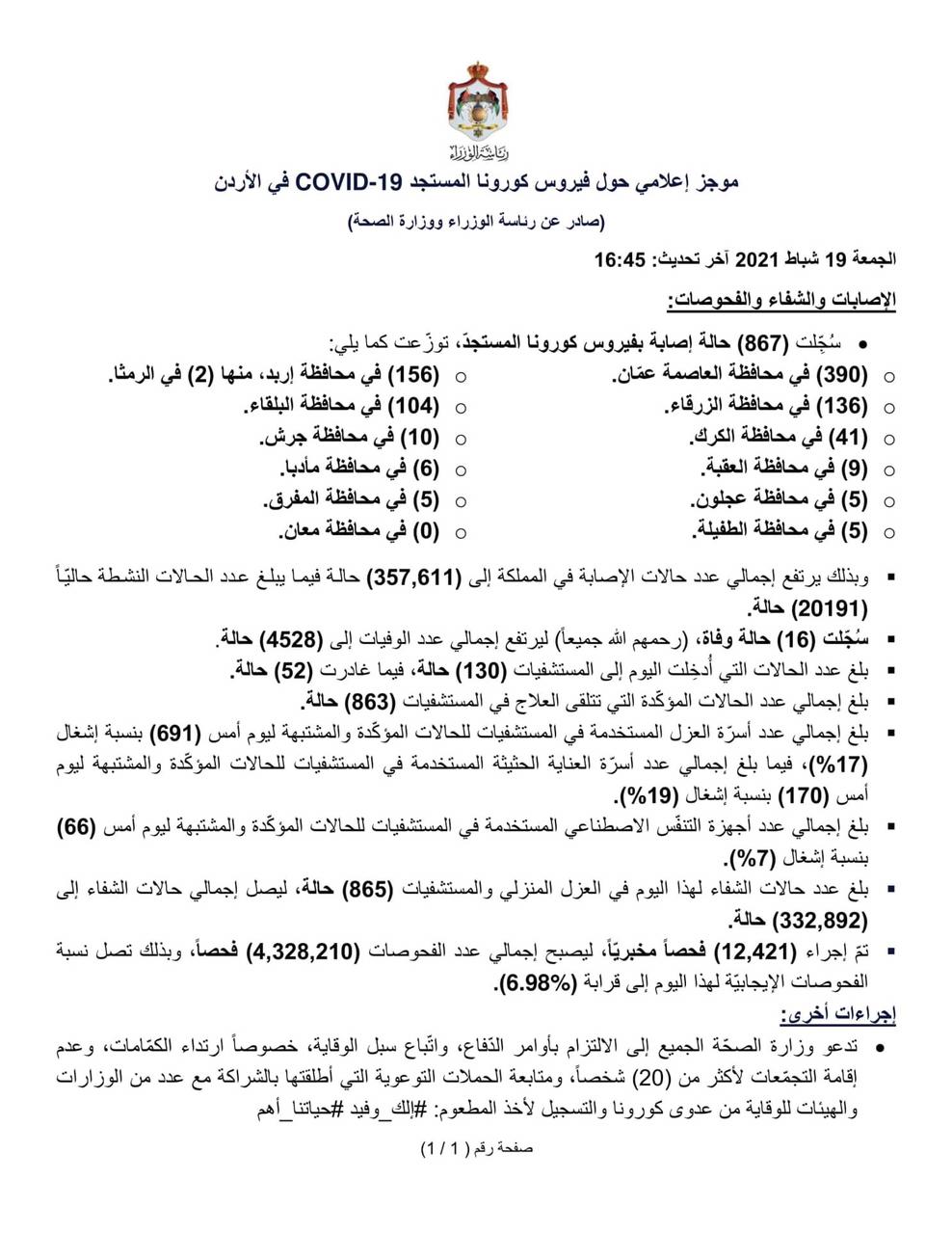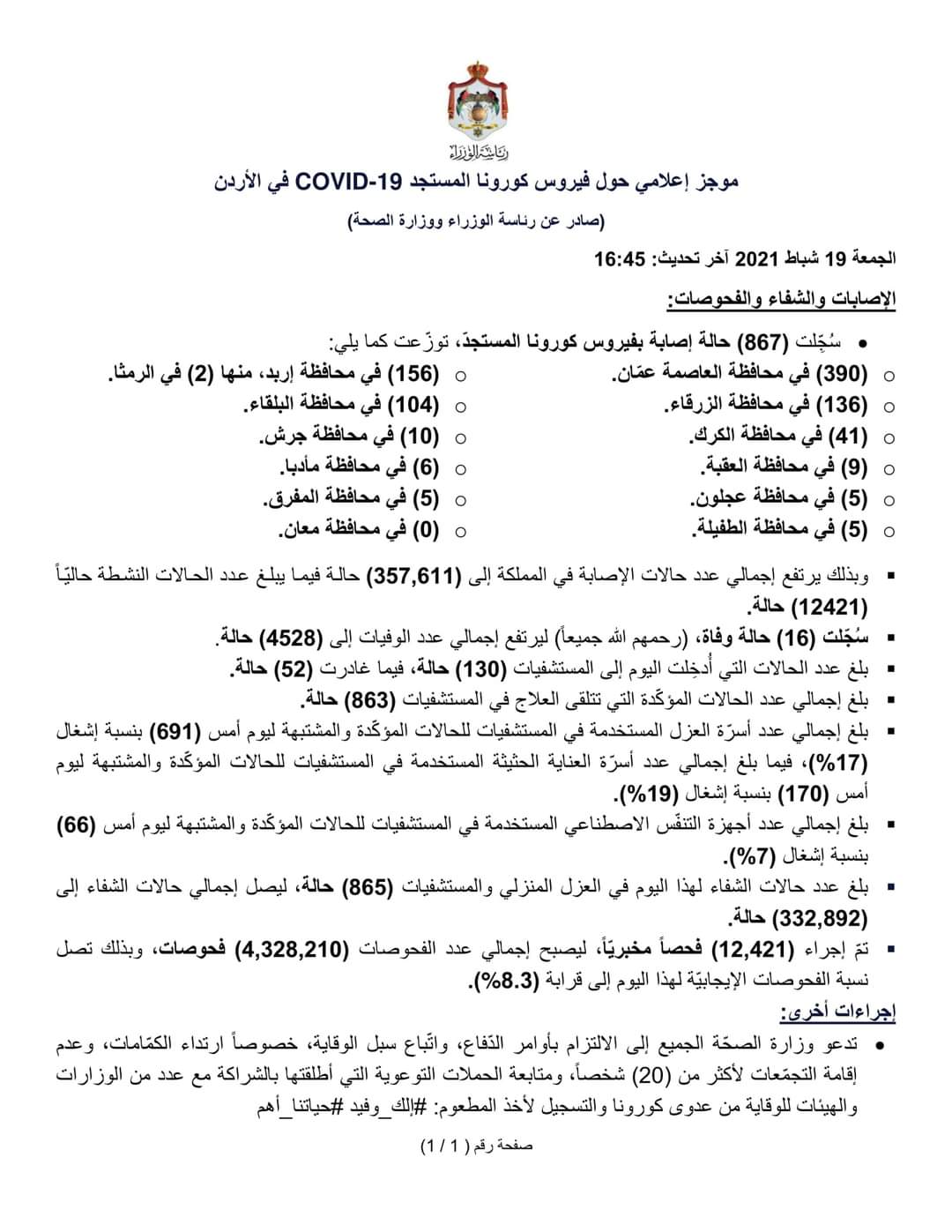 سجل في المملكة اليوم 16حالة وفاة و867اصابة بفيروس كورونا
