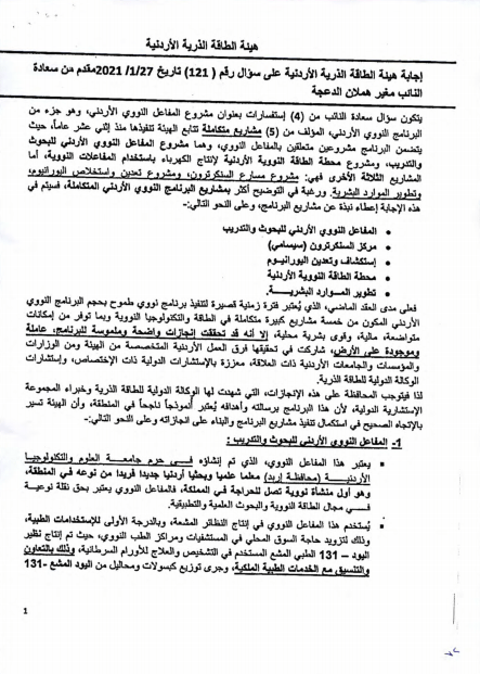 وأشار إلى اقتراض الهيئة 56 مليون دينار من كوريا الجنوبية بفائدة 0.2% ويسدد على 30 عاما مع مهلة 10 أعوام وتم إنفاقه على بناء المفاعل النووي البحثي، إضافة إلى 600 أف دولار سنويا من الوكالة الدولية للطاقة الذرية.