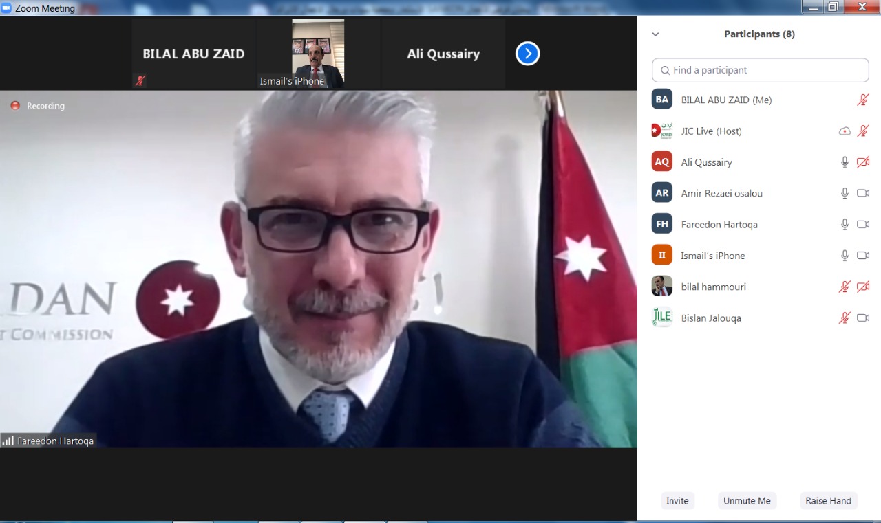 نظمت هيئة الإستثمار وجمعية سيدات ورجال الاعمال الاتراك الصناعيينSANKON، لقاءً عن بعد، بهدف التعاون مع الجمعية للترويج للفرص والمزايا الاستثمارية المتاحة أمام الشركات التركية الراغبة بدخول السوق الأردني والاستثمار في عدد من القطاعات الإستثمارية الواعدة وكيفية بدء رحلة الإستثمار وسهولة ممارسة الأعمال.