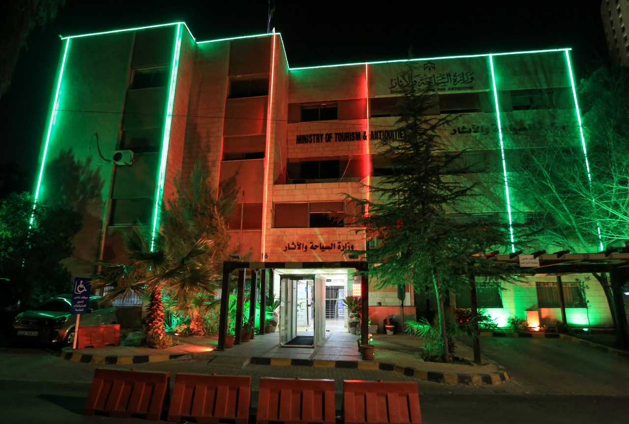 أضاءت وزارة السياحة والآثار بالتعاون مع أمانة عمان، مساء أمس الثلاثاء، موقع جبل القلعة والمدرج الروماني، ومبنى الوزارة، وذلك ضمن الاحتفالات بمئوية تأسيس الدولة الأردنية، وبيوم مدينة عمان الذي يصادف الثاني من آذار في كل عام.