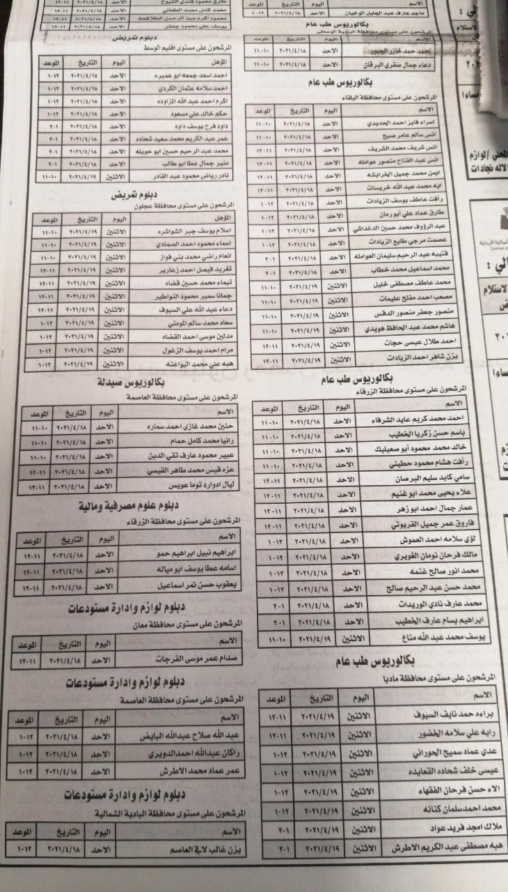 دعت وزارة الصحة بالتعاون مع ديوان الخدمة المدنية المرشحين الذين اجتازوا الامتحان التنافسي بنجاح، التواجد في معهد الإدارة العامة، لإجراء مقابلة شخصية.
