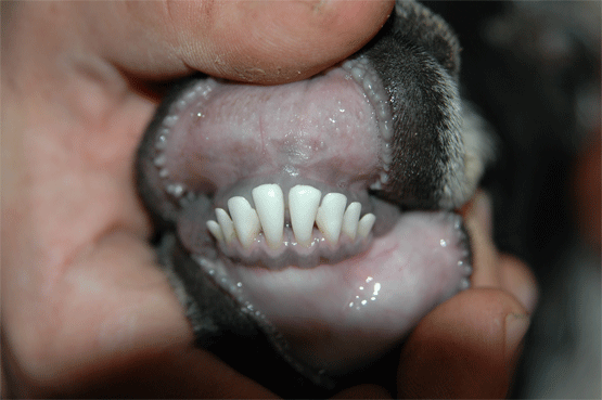 -أقل من سنة: تكون جميع الأسنان الأربعة الأمامية من الفك السفلي بيضاء ولبنية ومتماثلة.