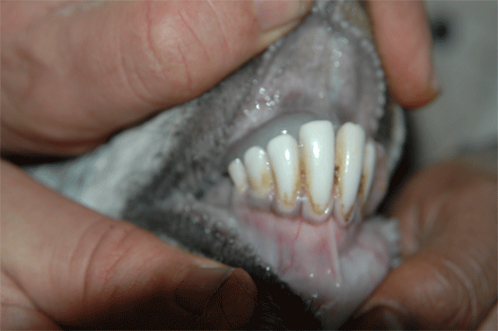 -أكبر من 4 سنوات: يلاحظ وجود 8 أسنان كبيرة وتتآكل ويصفر لونها.