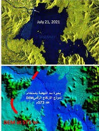 وقال خبير المياه المصري عبر صفحته على "فيسبوك" إنه "بمقارنة صورة بحيرة سد النهضة حاليا من الأقمار الصناعية بصورة نموذجية للبحيرة عند منسوب 573 مترا فوق سطح البحر باستخدام بيانات نموذج الارتفاع الرقمي (Digital Elevation Model, DEM) نجد أنهما متطابقتان، مما يؤكد أن التخزين الثانى 3 مليار متر مكعب عند منسوب 573 متر باجمالي 8 مليار متر مكعب".