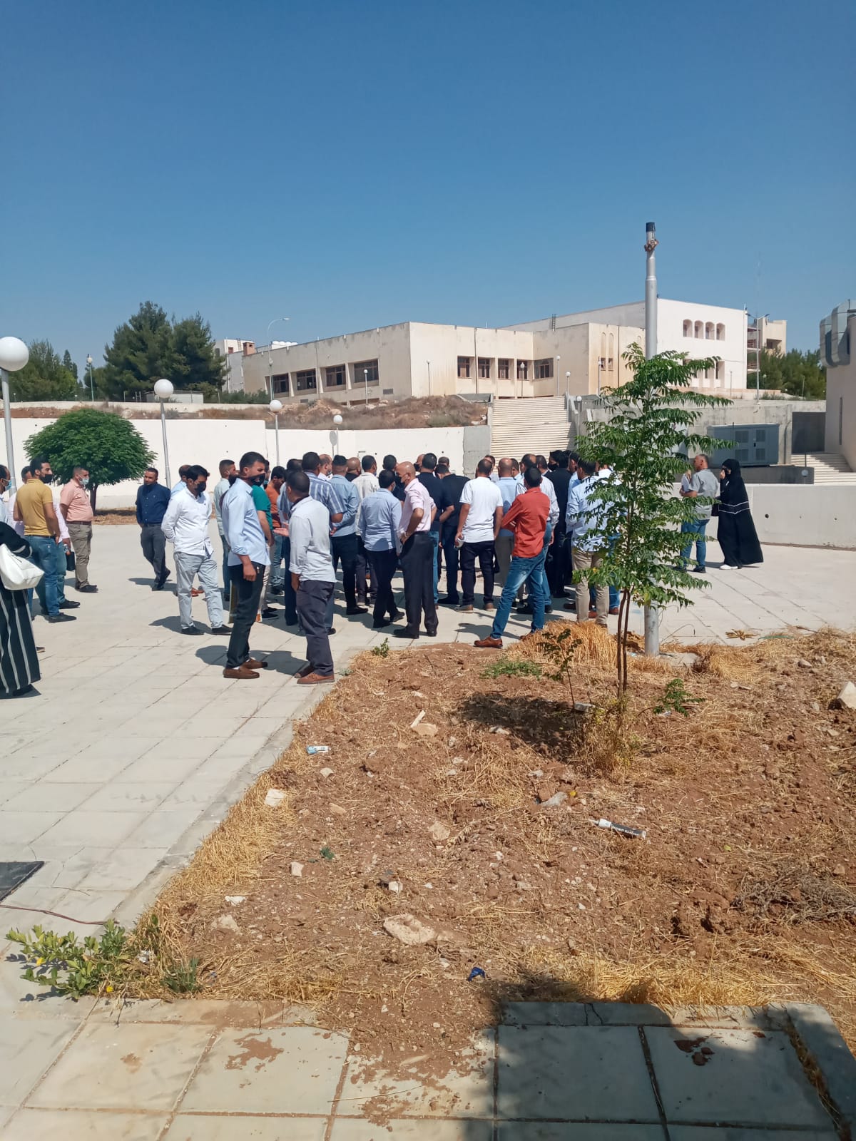 اعتصم امام مبنى رئاسة الجامعة طلبة الدبلوم رافضين الدوام الوجاهي في ظل الظروف الوبائية التي يعيشها الوطن،