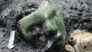 اكتشف باحثون قناعًا حجريًا أخضر اللون، عمره 2000 عام، داخل هرم قديم في المكسيك.
