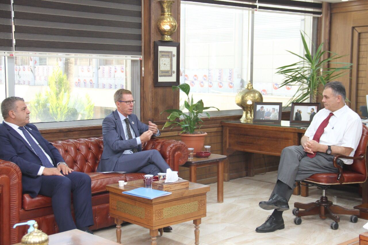 استقبل رئيس جامعة البلقاء التطبيقية الاستاذ الدكتور عبدالله سرور الزعبي في مكتبه اليوم المنسق المقيم للأمم المتحدة ومنسق الشؤون الإنسانية في الأردن اندرس بيدرسن يرافقه نبيل عساف الممثل المقيم لمنظمة الفاو في الأردن و طلال الفايز مسؤول العلاقات والتنسيق مع الحكومة و ختام ملكاوي اخصائية التواصل في مكتب المنسق المقيم للامم المتحدة .