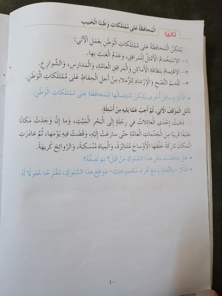 الحقيقة ان صورة الكتاب ( مزورة ) والجملة الحقيقية الموجودة في الكتاب هي ( " ذهبت احدى العائلات في رحلة الى البحر الميت "