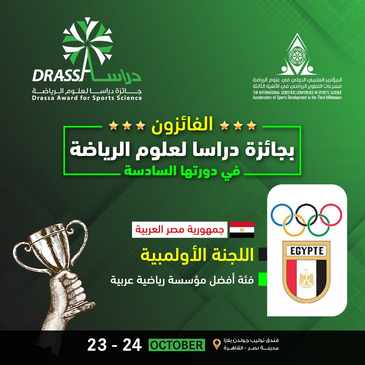 وفازت اللجنة الأولمبية المصرية بفئة " أفضل مؤسسة تستخدم او تعزز مسرعات التطوير الرياضي "