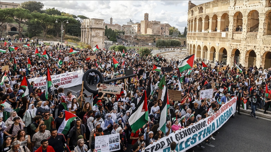 الآلاف يسيرون في العاصمة الإيطالية دعما لفلسطين