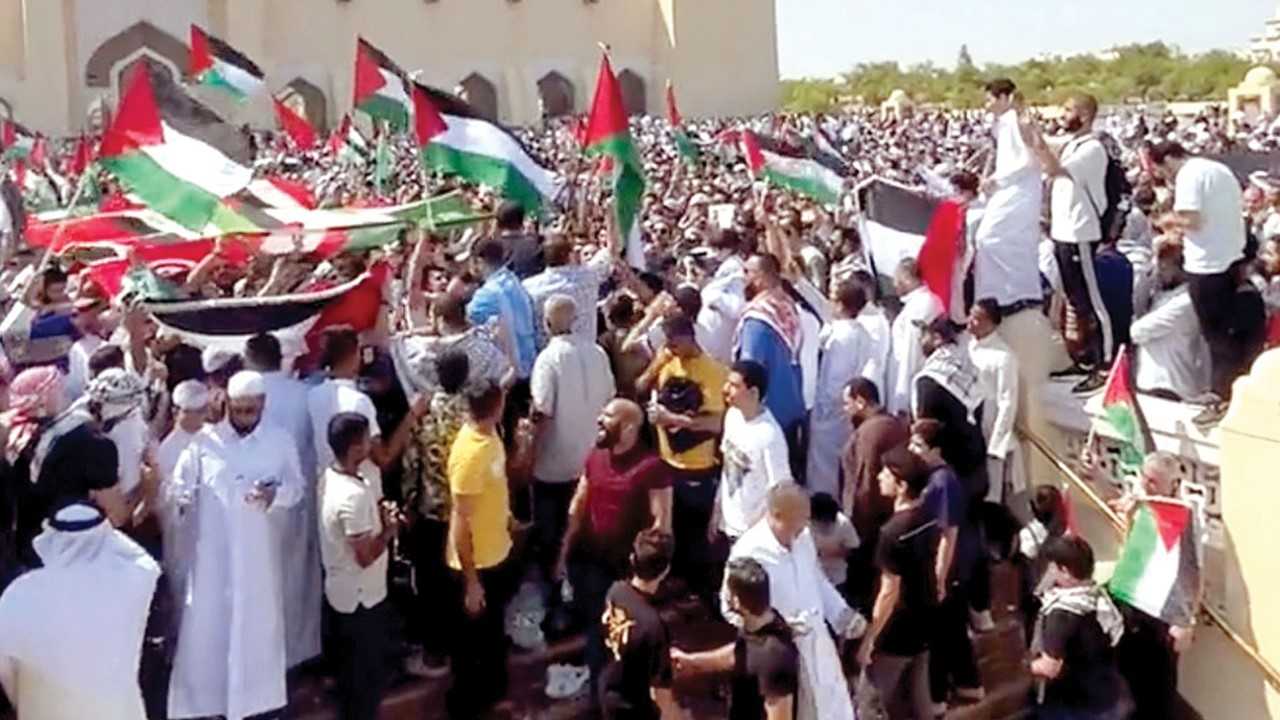 تظاهرة حاشدة في قطر تضامنا مع غزة