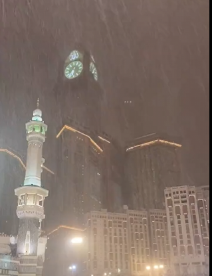 أضاءت سماء مكة المكرمة.. صواعق رعدية تضرب برج الساعة |شاهد