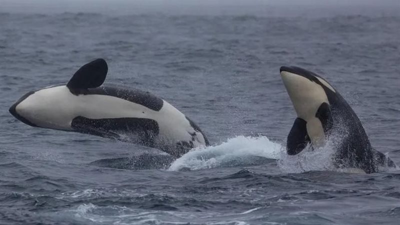 لحظة ظهور مجموعة من الحيتان القاتلة لطاقم مشروع بحثي ( فيديو)