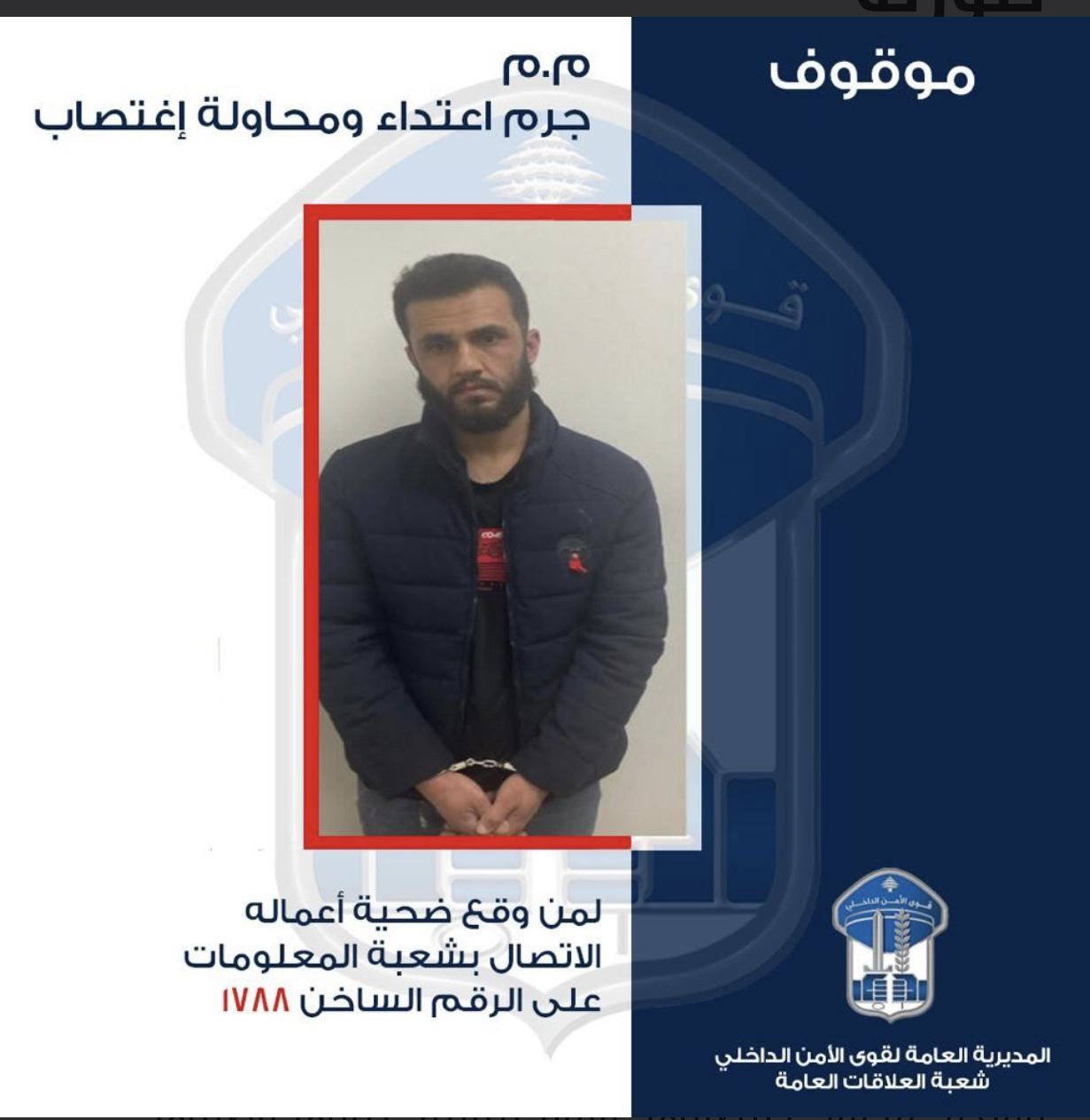 الأمن اللبناني ينشر صورة لاجئ سوري تحرش بصحفية بريطانية في بيروت … ويطلب من كل فتاة تحرش بها سابقا تقديم شكوى ضده