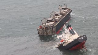 شاهد...انشطار سفينة عملاقة إثر جنوحها شمالي اليابان"فيديو"
