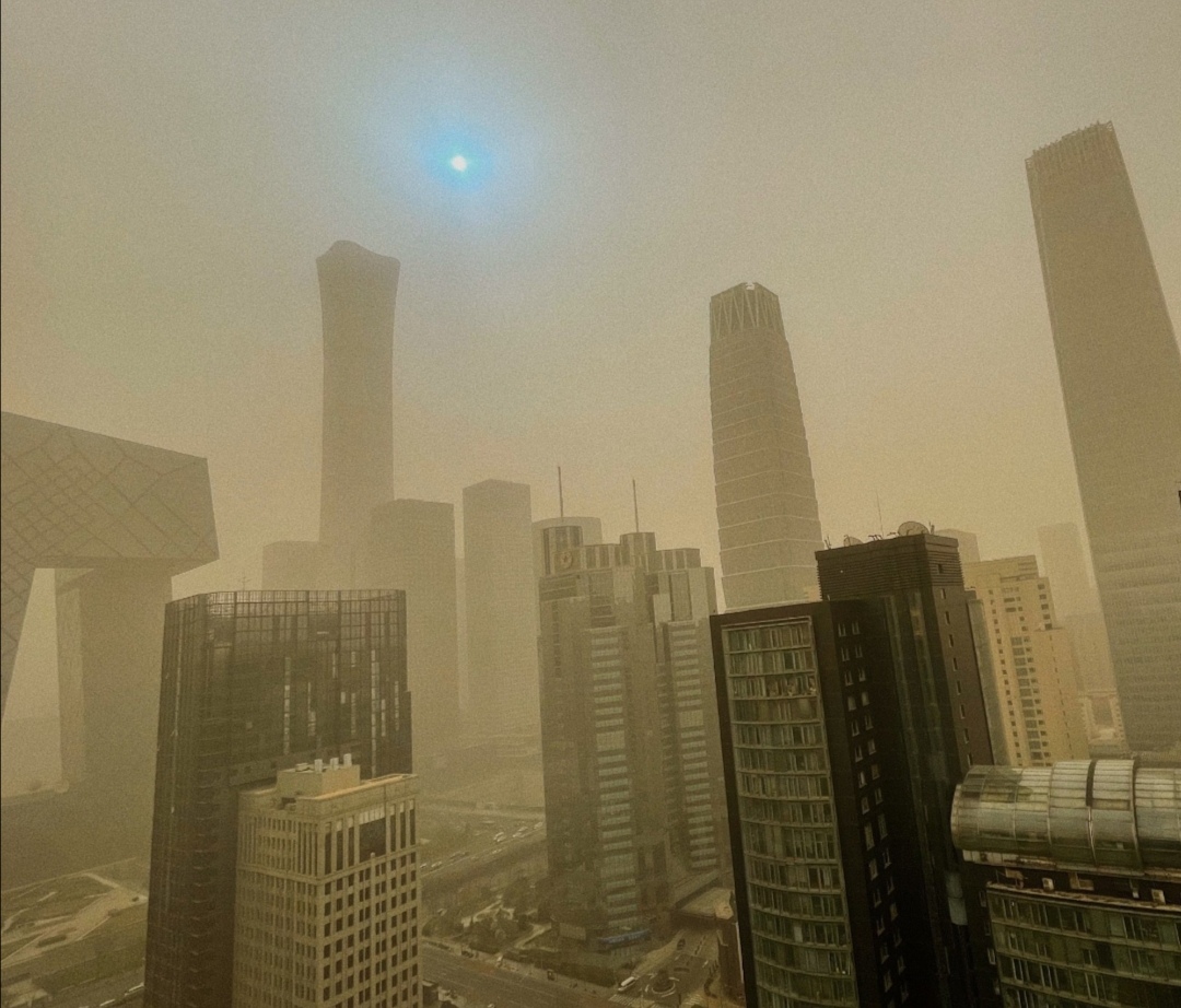 عاصفة رملية تجتاح بكين وتحجب ناطحات سحاب.. حوّلت لون الشمس إلى الأزرق (فيديو)