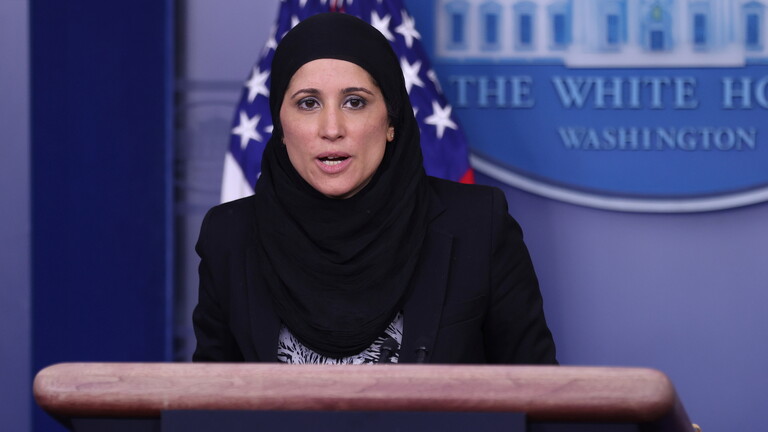 من تكون السمراء المحجبة الجميلة والتي ظهرت بالإيجاز الصحفي للبيت الابيض ؟