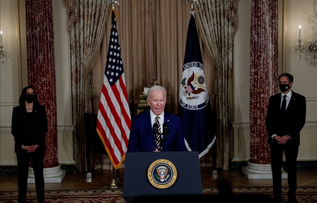 عاجل: بايدن في مؤتمر من وزاره الخارجيه امريكا عادت مجددا والدبلوماسيه عادت