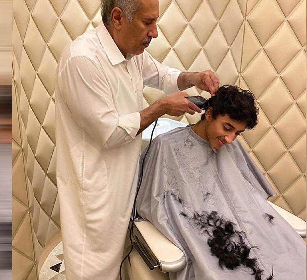 صورة رئيس وزراء قطر الأسبق يحلق شعر فلاح بن حمد تثير تفاعلا