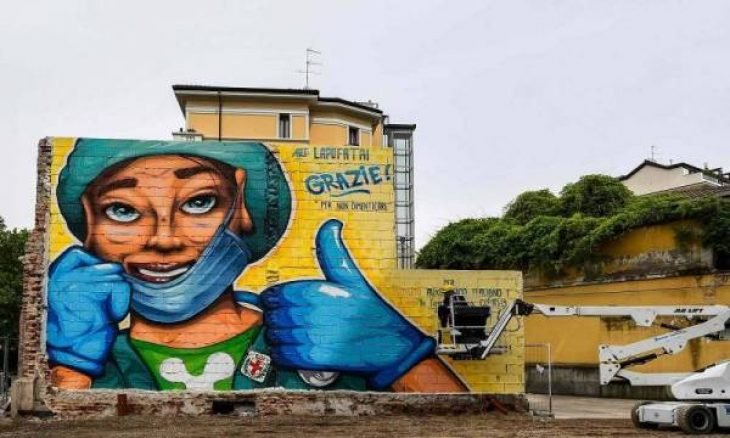 جدارية عملاقة في ميلانو تكريما للطواقم الطبية