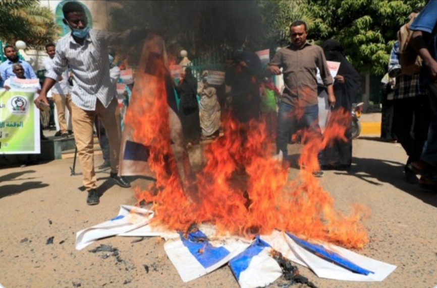 عرب وعجم:متظاهرون سودانيون يحرقون العلم الإسرائيلي رفضا للتطبيع