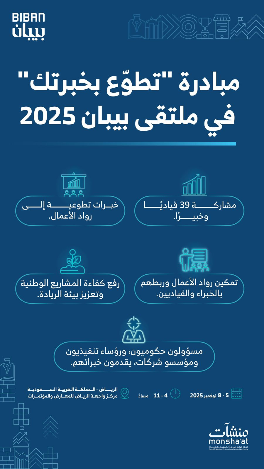 ( 39) قياديًا وخبيرًا يشاركون في مبادرة "تطوع بخبرتك" ضمن ملتقى بيبان 2025