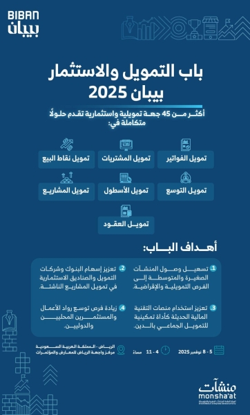 أكثر من 45 جهة تمويلية استثمارية تقدم حلولًا متكاملة لدعم المنشآت الصغيرة والمتوسطة في بيبان 2025