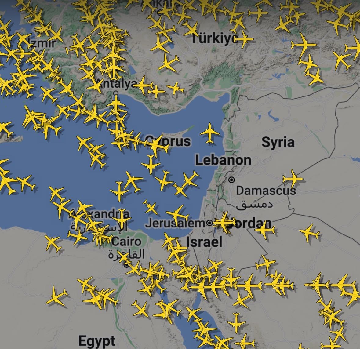 والملكية تؤجل رحلاتها لبيروت اليوم بسبب الوضع الراهن ….؟ الأجواء الجوية السورية و اللبنانية و الأراضي الفلسطينية المحتلة شبه فارغة بحسب موقع فلايت رادار 24