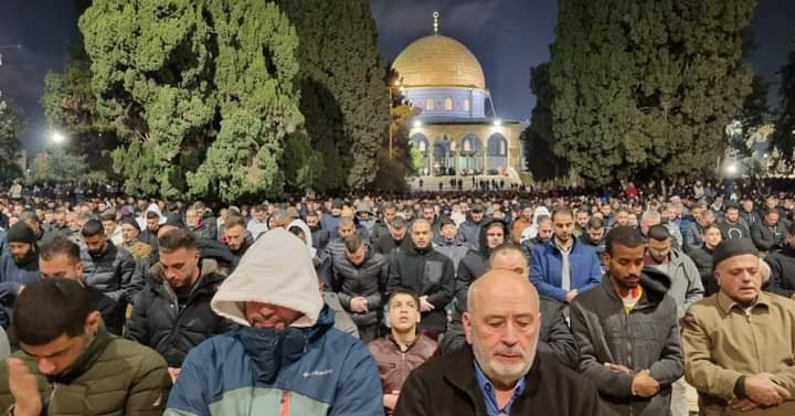 70 ألف شخص صلوا العشاء والتراويح في المسجد الأقصى في الليلة الرابعة من شهر رمضان رغم حواجز الاحتلال.