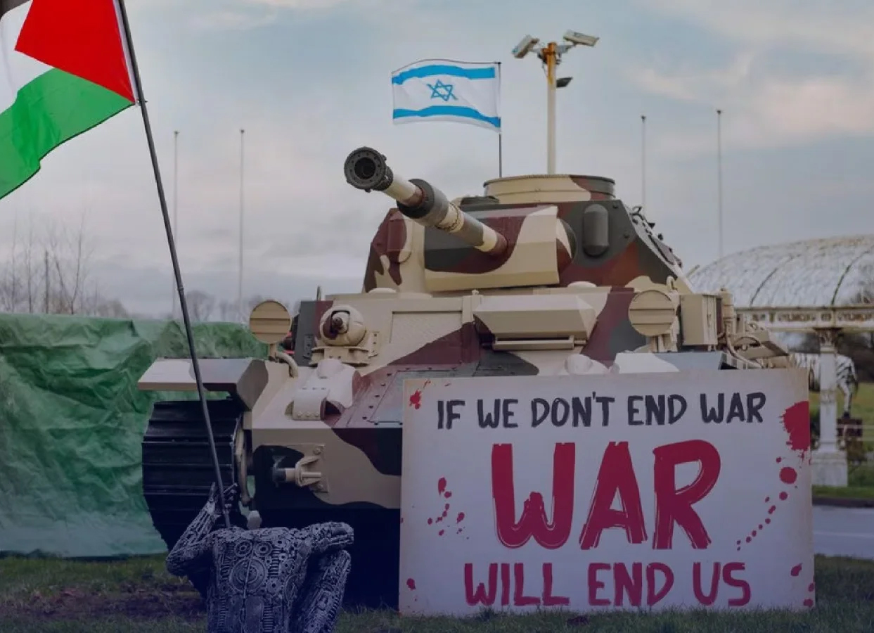 مركز فنون بريطاني يقيم تمثالا يطالب بوقف الحرب على غزة