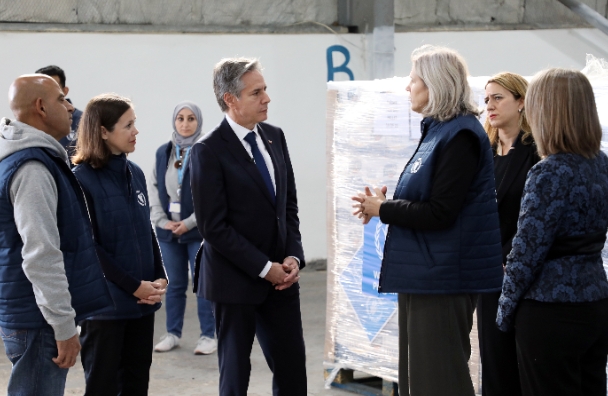وزير الخارجية الأميركي يزور مستودعات برنامج الأغذية العالمي