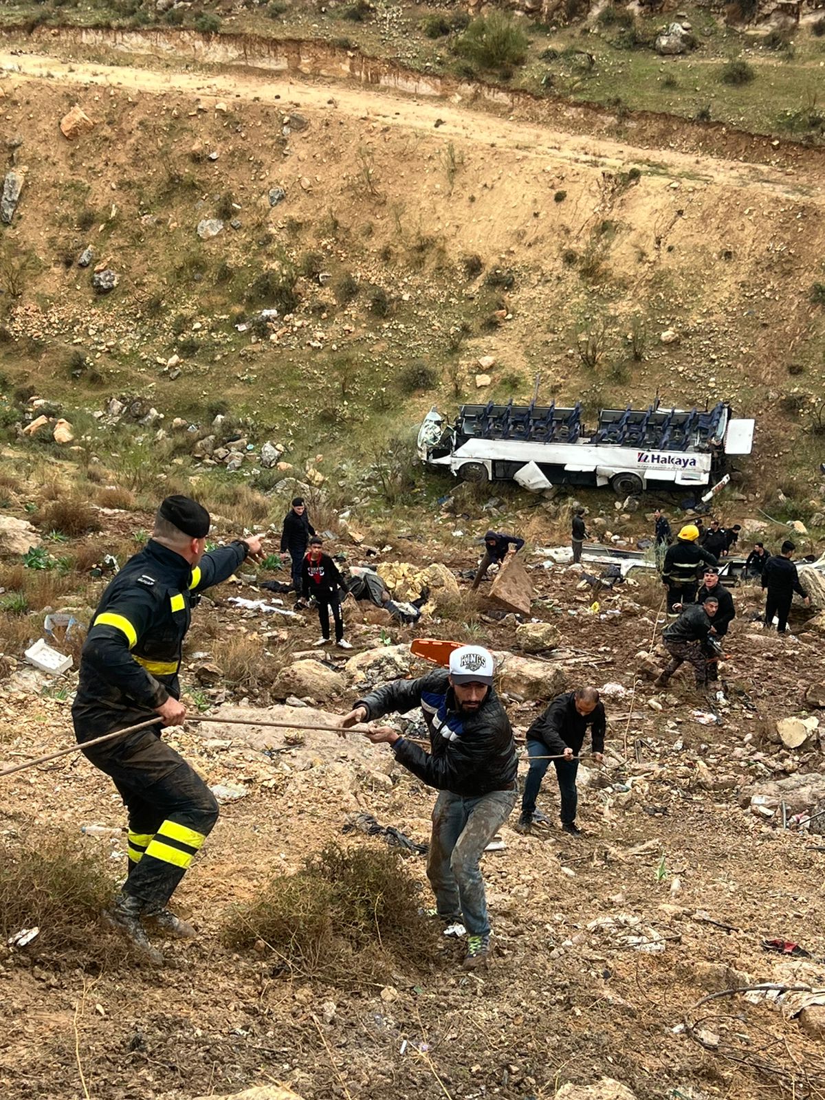 5 وفيات و35 إصابة بتدهور حافلة نقل ركاب على طريق سلحوب (صور