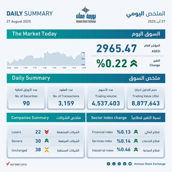 بورصة عمان تغلق تداولاتها على ارتفاع