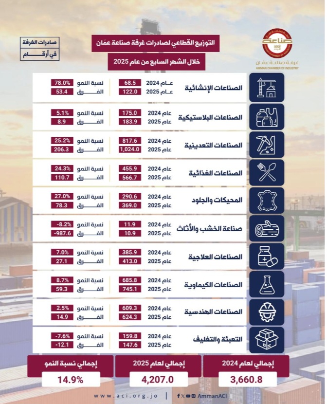 4.207 مليار دينار صادرات صناعة عمان خلال 7 أشهر