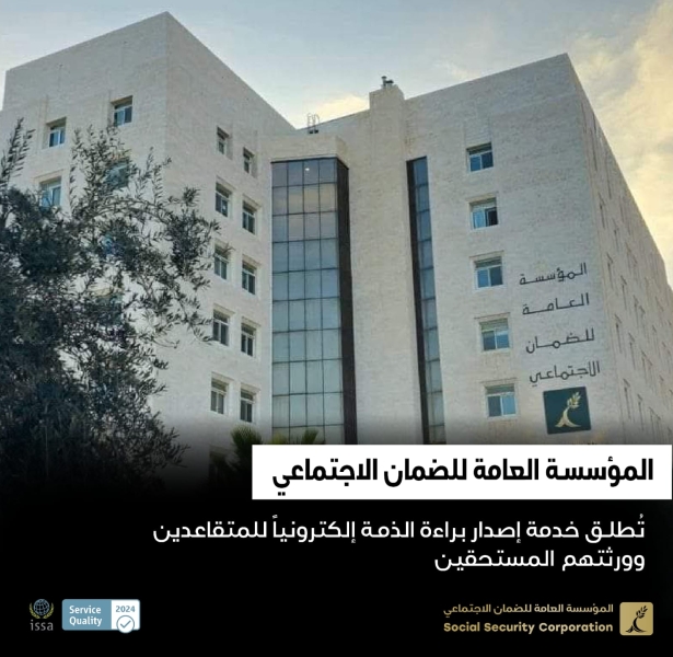 مؤسسة الضمان الاجتماعي تُطلق خدمة إصدار براءة الذمة إلكترونياً للمتقاعدين وورثتهم المستحقين