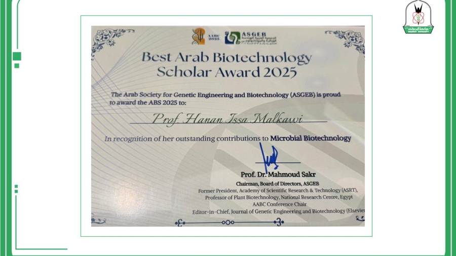 عالمة أردنية من جامعة اليرموك تفوز بجائزة أفضل عالم عربي في التكنولوجيا الحيوية