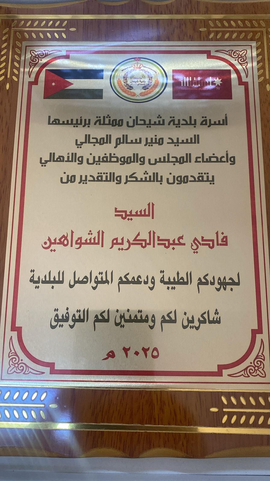 الكرك - بلدية شيحان تكرم ناشر "بلكي نيوز" تقديرًا لدعمه المستمر