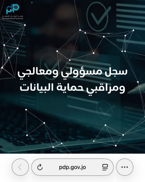 الاقتصاد الرقمي تعلن إطلاق الموقع الالكتروني لسجل مسؤولي ومعالجي ومراقبي حماية البيانات الشخصية تجريبياً
