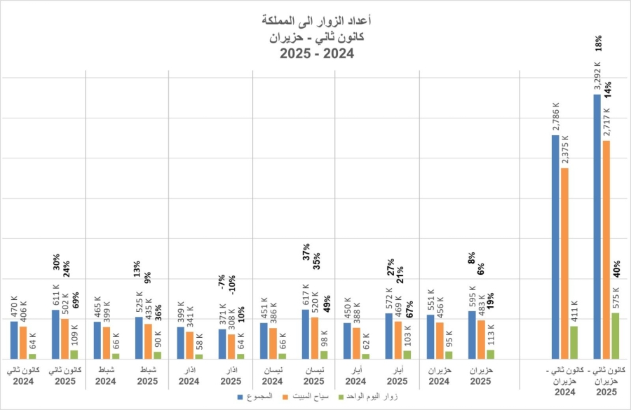 نمو السياحة في الأردن 18% خلال النصف الأول للعام الحالي