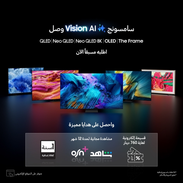 "سامسونج إلكترونيكس" المشرق العربي تطلق حملة الطلب المسبق على تشكيلة 2025 من أجهزة التلفاز Vision AI مع هدايا استثنائية ومكافآت مميزة