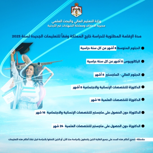 "التعليم العالي" تطلق إنفوجرافيك لمدد الإقامة الجديدة لمعادلة الشهادات غير الأردنية