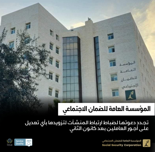 مؤسسة الضمان الاجتماعي تجدد دعوتها لضباط ارتباط المنشآت لتزويدها بأي تعديل على أجور العاملين بعد كانون الثاني