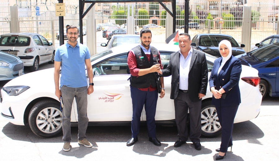 أول شاب أردني يستلم سيارة ضمن مشروع تمويل السيارات والسكوترات الذي أطلقه البريد الأردني بالتعاون مع صندوق التنمية والتشغيل